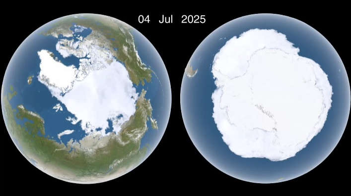 NASAと米国雪氷データセンターによれば、北半球では夏の終わりが近づいており、9月10日に、北極圏の海氷の面積は年間最小に縮んだ。海氷の総面積は2008年と並んで、460万平方キロメートルで、記録上10番目に小さかった。冬が終わりに近づいている南半球では、南極の氷はまだ蓄積しているが、2016年以前に記録された氷のレベルと比較すると比較的低いままである。 |