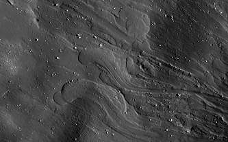 <イメージの説明>: 冷却された溶岩のような衝撃流が、リトル・ローウェル・クレータから流れ出た溶融。 |