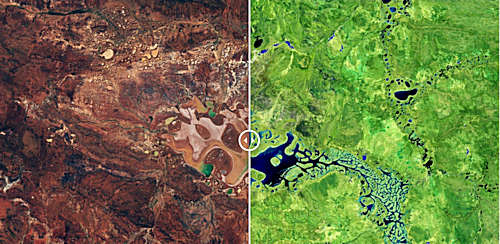 コペルニクスセンチネル2ミッションは、日本の沖合の太平洋に渦巻く藻類の花を見た。ズームインして10メートルの解像度で詳細を見よう。 |