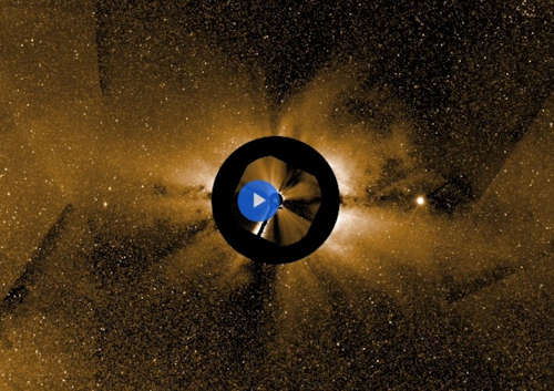 プロバ2、3、SOHOによって捕捉されたコロナ質量放出 (ヨーロッパ宇宙機関)