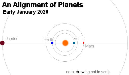 今週、木星と金星は太陽の反対側に位置する。一部の研究者達にとって、この幾何学は単なる天体の偶然以上のものとされている。少数ながら、この継続的な研究の人達は、惑星の配列が太陽活動の調節に寄与していることを示唆している。 |