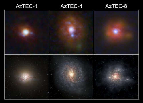 初期宇宙にある3つの「モンスター銀河」をアルマ望遠鏡とジェームズ・ウェッブ宇宙望遠鏡で詳細に観測した国際研究チームは、それぞれの銀河が大きく異なる姿を見せることを明らかにしました。詳細な解析から、モンスター銀河特有の非常に活発な星形成が、単一のメカニズムではなく複数の起源によって引き起こされていることが新たに示されました。巨大銀河形成の理解に新たな視点を与える重要な成果です。 |