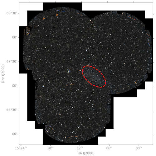 すばる望遠鏡の超広視野主焦点カメラで、天の川(ミルキーウェイ)銀河の衛星銀河の周辺に広がる暗い星々を探した結果、これまで知られていなかった新しい構造が発見されました。この構造は、銀河同士の衝突や合体の痕跡と似通った特徴を持ちます。非常に小さな矮小銀河でも銀河衝突が起きていた可能性を示す重要な手がかりです。 |