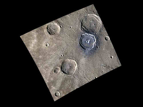 ここでは水星探査衛星メッセンジャー(MESSENGER:MErcury Surface, Space ENvironment, GEochemistry and Ranging)の、2011年3月24日の水星軌道周回開始後のデータを紹介しています。<お断り>: 水星の地名は、画家、小説家、音楽家などの世界中の文化人の名前からとられています。たとえば日本人では、葛飾北斎、丸山応挙、夏目漱石など多数の名前が使われています。人名なので外国人の場合にはどのように読むのか分からないことが多くあります。確認できる限りカナ文字で表記していますが、不能な場合は原文そのままで記載しますのでご了解ください。