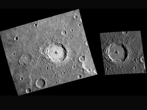 ここでは水星探査衛星メッセンジャー(MESSENGER:MErcury Surface, Space ENvironment, GEochemistry and Ranging)の、2011年3月24日の水星軌道周回開始後のデータを紹介しています。<お断り>: 水星の地名は、画家、小説家、音楽家などの世界中の文化人の名前からとられています。たとえば日本人では、葛飾北斎、丸山応挙、夏目漱石など多数の名前が使われています。人名なので外国人の場合にはどのように読むのか分からないことが多くあります。確認できる限りカナ文字で表記していますが、不能な場合は原文そのままで記載しますのでご了解ください。