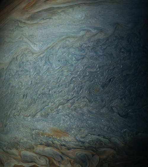 NASAのジュノ宇宙船で得られた木星の雲の一層近い視界。