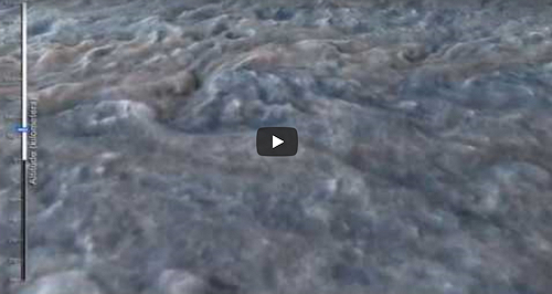 NASAのジュノ宇宙船による緯度 37.8 度の雲の波が、この3次元のジュピター神の雲景を支配している。 JunoCam は、8,900キロメートルの高度から、国際時間2017年5月19日 5:50 に、この拡張されたカラー写真を得た。差渡し6キロメートルほどの小さな詳細がこのイメージで確認できる。小さな明るい高い雲は差渡し約25キロメートルであり、いくつかのエリアには強風の細い帯と寒冷前線と関連する嵐「スコールライン」があるように見える。木星では、このような高い雲は、ほぼ間違いなく水やアンモニアの氷から成っている。