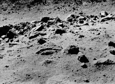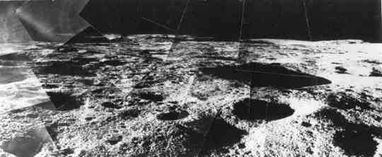 | 直径10メートルのクレータに座るサーベイヤ5号:幅約960メートル。 |