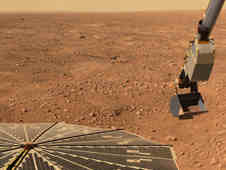 着陸船のロボットアームはこのミッションを通して火星の土を掘り出し、砕き、研究室に届けた。