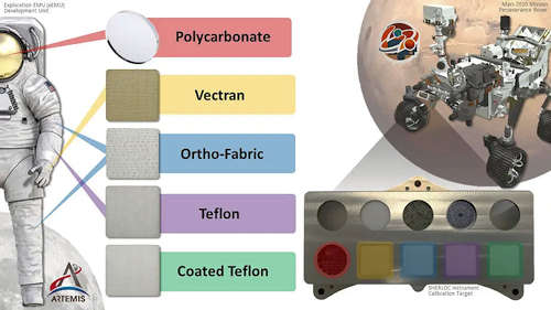 <イメージの説明>: 模擬火星のダストを示す実験室サンプル。黄土色は、鉄分を多く含むフェリヒドライトの特徴であり、火星の古代の水の活動や環境条件について重要な洞察を与えてくれる。この微粉末の混合物は、フェリヒドライトと粉砕された玄武岩からなり、粒子のサイズは1マイクロメートル(人間の髪の毛の1/100の直径)未満である。サンプルのスケールは直径1インチである。