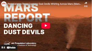 NASAの火星探査車「パーサビアランス」に搭載されたナビゲーションカメラで撮影したイメージで作られたこの短いビデオでは、火星のダストデビルが小さなダストデビルを飲み込む様子を見ることができる。これらの渦巻き模様の、時にはそびえ立つ大気とダストの柱は火星では一般的である。この小さなダストデビルの終焉は、火星の大気に作用する力をよりよく理解するためにパーサビアランスの科学チームが実施した画像実験中に捉えられた。