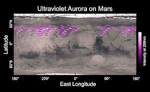 オーロラは5日間の全ての観測において検出された。 MAVEN のイメージング紫外線分光器(IUVS)は、12月25日の前の5日間の、科学者達が「クリスマスの光(Christmas lights)」と名付けた観測を行った。 MAVEN は明るい紫外線のオーロラの輝きが火星の北半球にわたっているのを見た。地球では、オーロラは、北または南の光として知られている。
