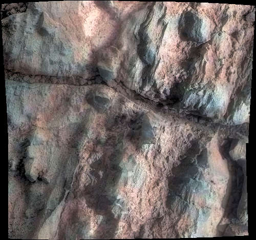 NASAの火星探査ローバー・オポチュニティは、その現在の2年間の拡張ミッションの主な目的地、広大なクレータの縁の内部の傾斜で刻まれた古代の流体で刻まれた谷に着いた。ローバーが5月初めに「忍耐の谷(Perseverance Valley)」の上端に接近したとき、そのカメラからのイメージは、火星の軌道からとられたイメージに見るより大きな解像度で、このエリアの部分を示し始めた。
