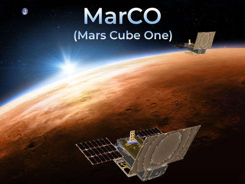 初めてのキューブ衛星深宇宙へ 地球を越えてインサイトを打ち上げるロケットは、別のNASAの技術実験機、マーズキューブワン(Mars Cube One:MarCO)と呼ばれる2機のミニ宇宙船をも打上げるだろう。これらの書類カバンサイズのキューブ衛星は、インサイトの後ろで火星への自身の道で飛ぶだろう。